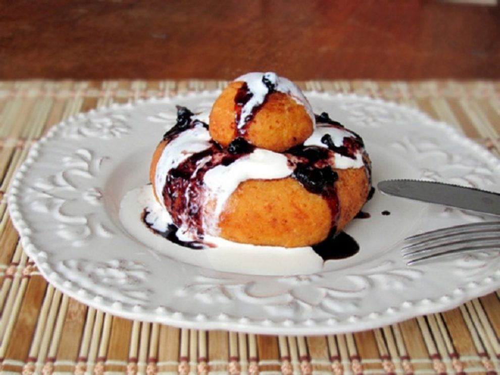 Papanaşii se servesc cu smântână şi cu dulceaţă, dar şi cu zahăr pudră.