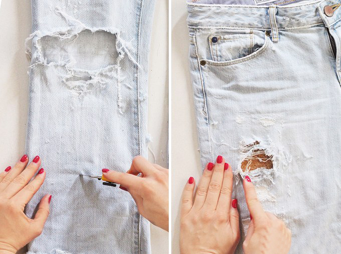 Mie personal îmi place lookul asimetric al jeanșilor. Dar simțiți-vă liberi să experimentați și să rupeți cât doriți, să destrămați, dar atenție, dacă nu sunteți siguri cum vin jeanșii, pur și simplu probați-i pentru a vedea exact cum arată.