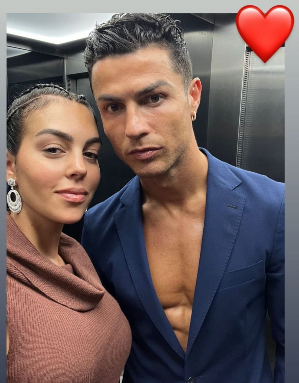 Georgina e conștientă că arată ”bombă” așa că a postat pe Instagram imagini cu ea și fotbalistul înainte de o ieșire în oraș. E impecabilă la siluetă, și și-a făcut clasicul selfie în oglinda de la lift, după care l-a pus pe Instastory.