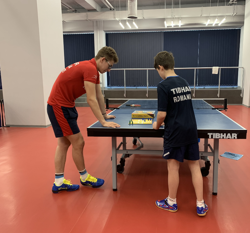 Andrei și Robert Istrate, doi frați care fac performanță în tenisul de masă românesc, au luat o pauză de la antrenamente și s-au delectat în fața unei planșe cu 8 pioni și un zar, ca atunci când erau mici.