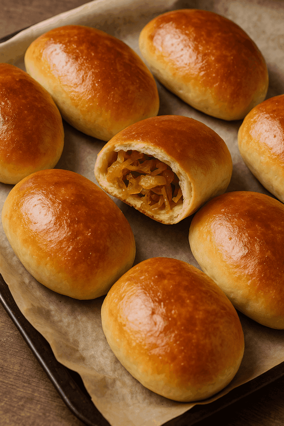 În varianta lor clasică, plăcintele cu varză pot fi pregătite fie la tigaie, fie la cuptor. Rețeta de mai jos prezintă varianta coaptă, ideală pentru un rezultat mai aerat și mai fraged.